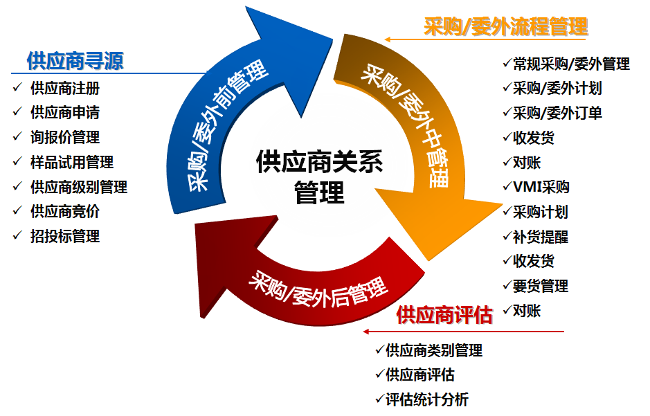 金蝶供應(yīng)商管理解決方案 供應(yīng)商管理系統(tǒng)包含供應(yīng)商管理模塊、供應(yīng)商門戶兩個模塊。供應(yīng)商管理主要用于管理供應(yīng)商全生命周期。供應(yīng)商門戶主要用于企業(yè)與供應(yīng)商進行業(yè)務(wù)協(xié)同和信息溝通。 適用企業(yè) 供求關(guān)系復(fù)雜,希望通過有效的考核機制,完善的詢報價體系,提升采購效率,降低企業(yè)成本,改善供求關(guān)系的企業(yè) 企業(yè)特征 供應(yīng)商數(shù)量多、管理難 采購品種多,詢價過程復(fù)雜繁瑣 訂單協(xié)同困難,采購催單疲于奔命 雙方對賬業(yè)務(wù)繁雜,希望能方便快捷的處理對賬 適用行業(yè) 電子、機械、家電、五金等制造行業(yè)均可 供應(yīng)商管理的重要性 現(xiàn)在的市場競爭已由企業(yè)間的競爭轉(zhuǎn)變?yōu)楣?yīng)鏈之間的競爭,有效地供應(yīng)鏈管理要求企業(yè)內(nèi)部和外部的整合。企業(yè)與供應(yīng)商建立戰(zhàn)略合作伙伴,才能共同建立更具有競爭力的供應(yīng)鏈體系。 采購是企業(yè)產(chǎn)品質(zhì)量的基本保證。 產(chǎn)品價值中70%以上是經(jīng)過采購由供應(yīng)商提供,也就是說企業(yè)產(chǎn)品質(zhì)量不僅要在企業(yè)內(nèi)部控制好,更多的應(yīng)控制在供應(yīng)商的質(zhì)量過程,也就是“上游質(zhì)量”控制,上游質(zhì)量控制好,不僅可以為下游質(zhì)量打好基礎(chǔ),同時可以降低質(zhì)量成本,減少企業(yè)來料檢驗的費用等。 采購部門不是成本中心,是企業(yè)真正的利潤中心。 花錢并不可怕,既然每個公司都要在采購上花錢,那么,通過與供應(yīng)商建立戰(zhàn)略合作關(guān)系,相對競爭對手取得物廉價美的材料,也是樹立競爭優(yōu)勢的有效手段。 供應(yīng)商門戶功能 應(yīng)用價值 |